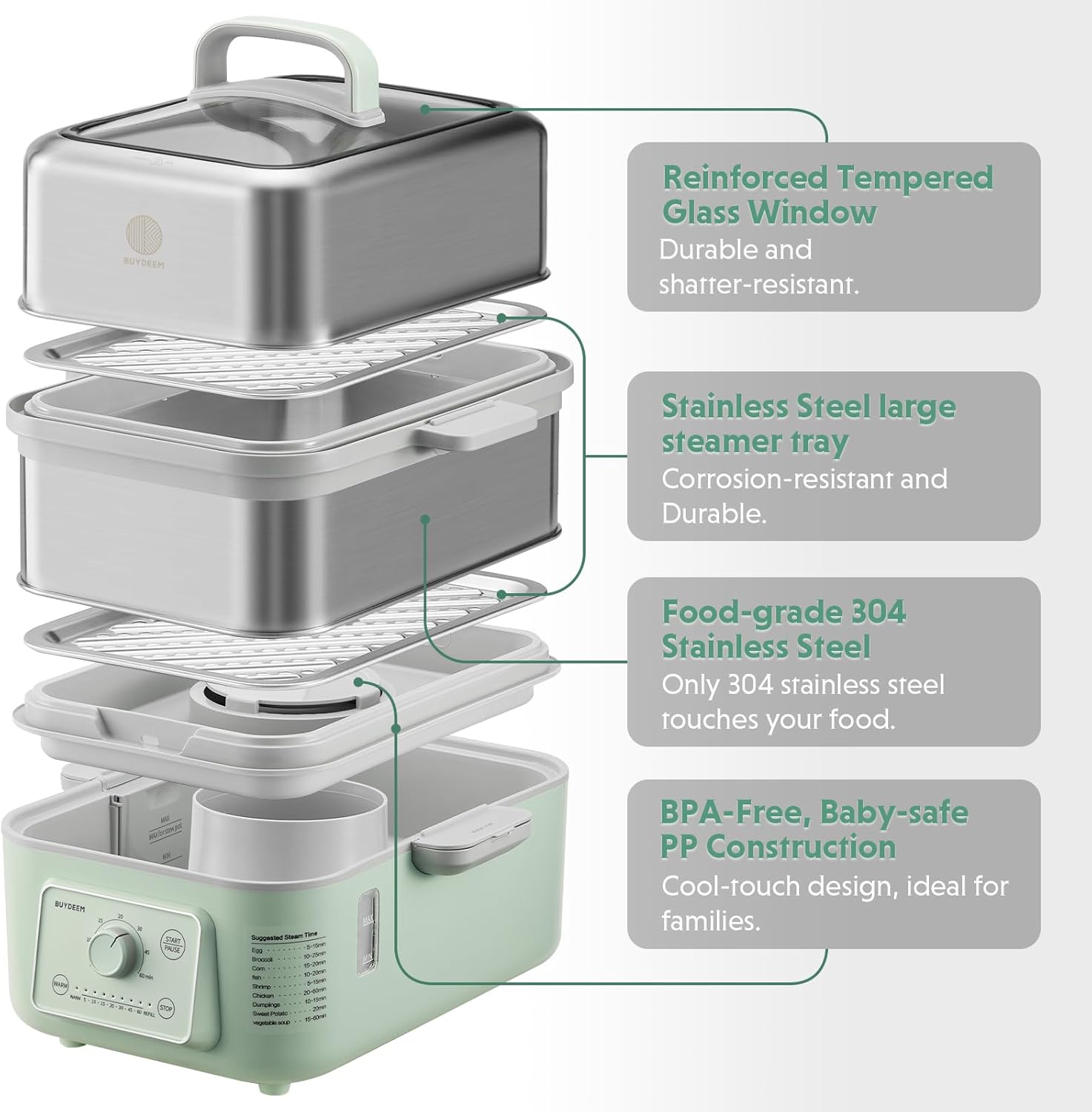 With its large capacity, intuitive controls, and premium materials, the BUYDEEM G52 steamer brings effortless, healthy cooking to your kitchen. It’s a dependable choice for families, meal preppers, and anyone who wants fast, consistent steaming without the hassle of traditional stovetop methods.