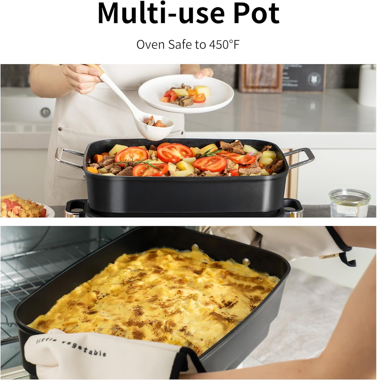 • Easy oven‑to‑table serving